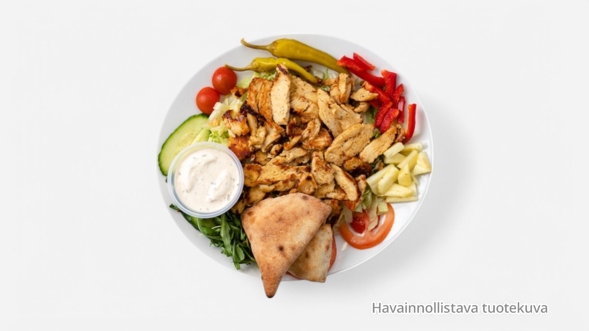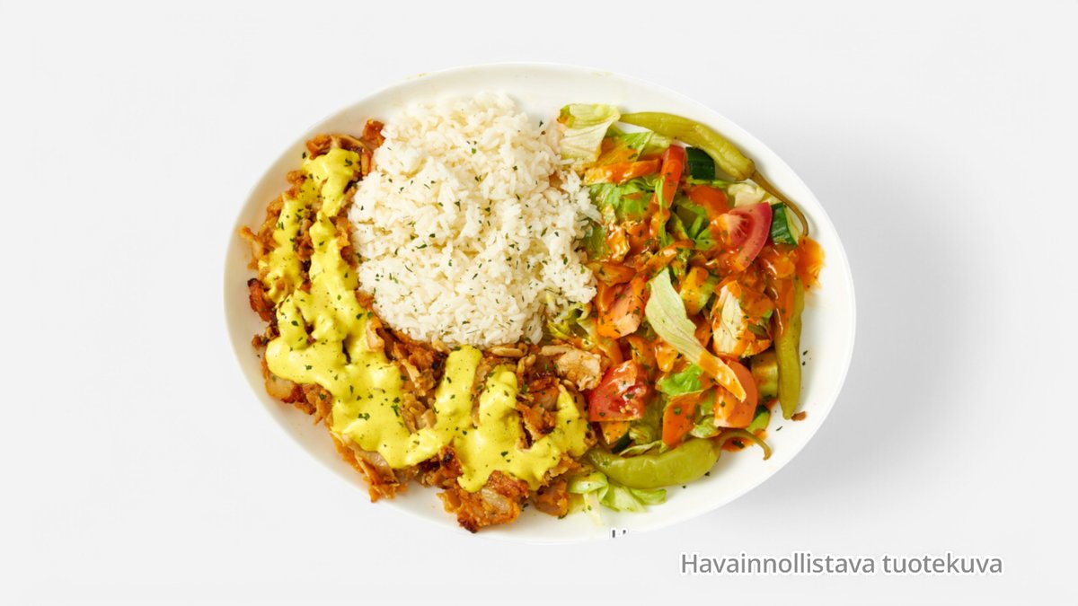 Kebabliha, salaatti, valitsemasi lisuke ja kastike