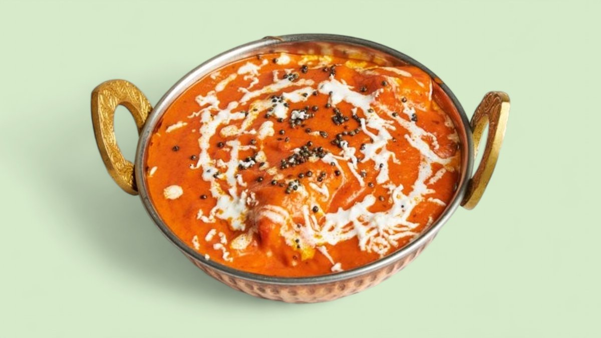 Tandooruunissa grillattua kananrintapaloja cashewjauho-tomatti-voikermakastikkeessa Tandoor grilled chicken pieces in cashew-tomato butter-cream sauce
