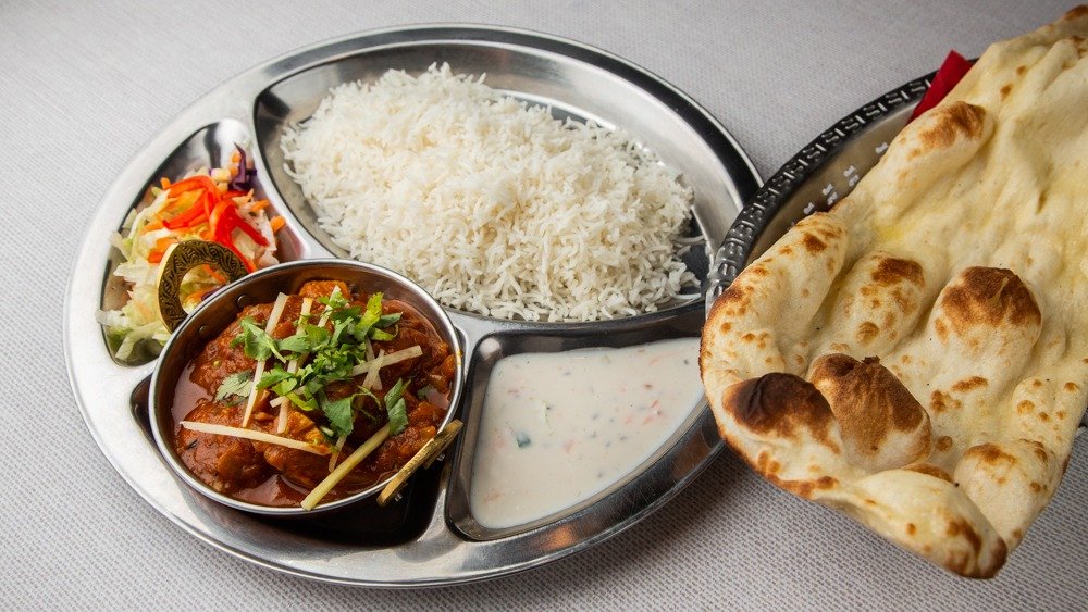 Kaikkiin annoksiin kuuluu basmatiriisiä, tandoori nan-leipää ja raita.G=Gluteeniton: L= Laktoositon: P= Pähkinätön