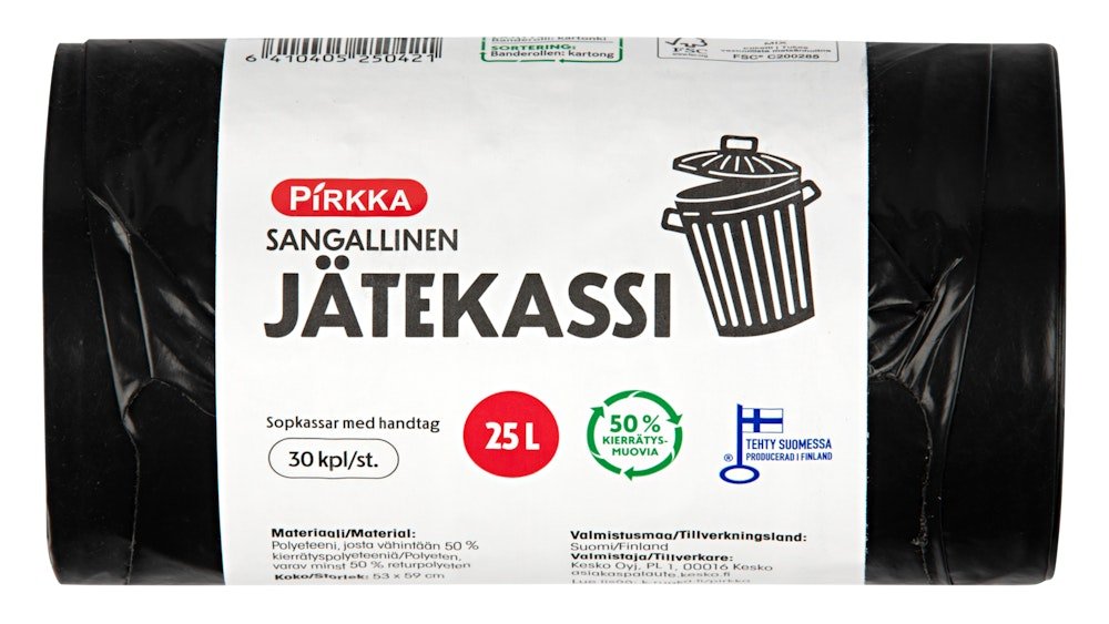 Pirkka jätekassi 25l 30kpl musta
