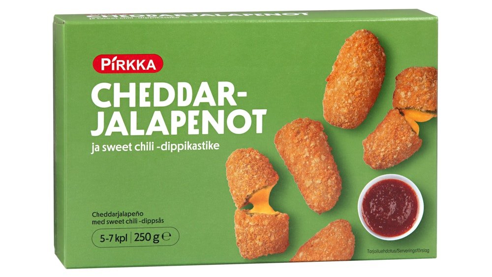 Pirkka cheddarjalapenot ja sweet chili -dippikastike 250g pakaste