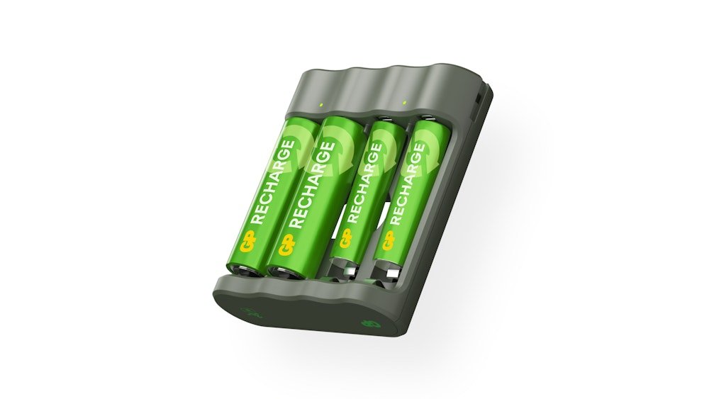 GP Recharge akkuparistolaturi + 2 x AA 2100mAh ja 2 x AAA 800mAh -akut