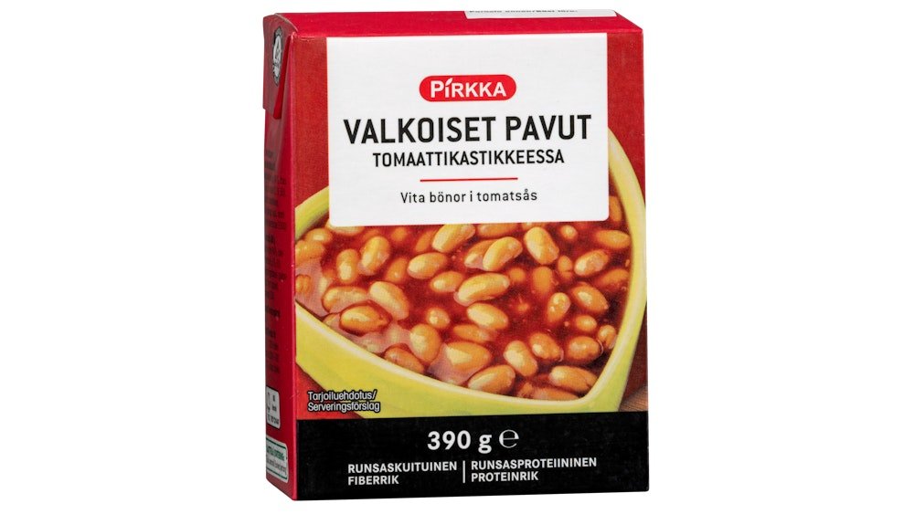 Pirkka valkoiset pavut tomaattikastikkeessa 390g