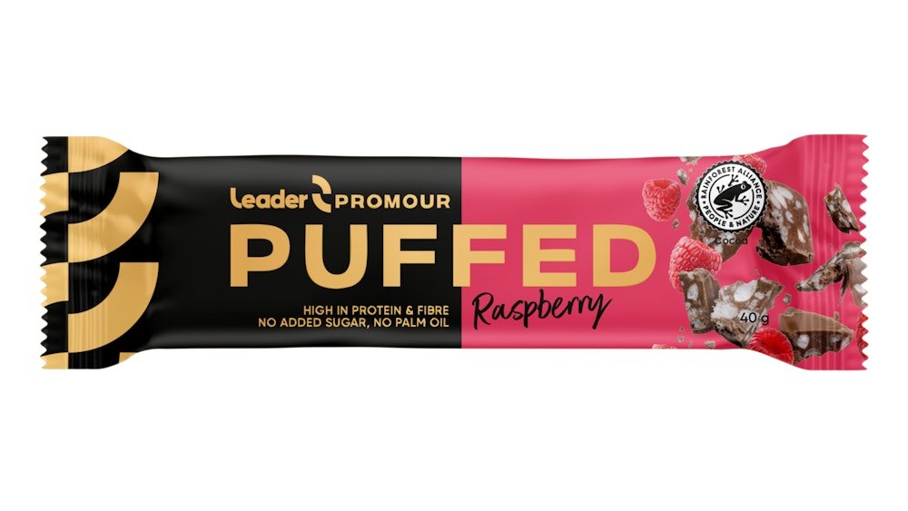 Leader Promour Puffed Raspberry riisisuklaaproteiinipatukka 40 g