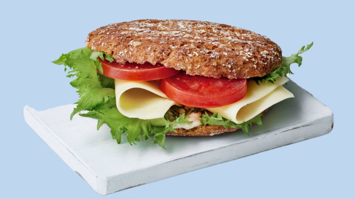 Täytetty kaurasämpylä kalkkunameetwursti-juusto