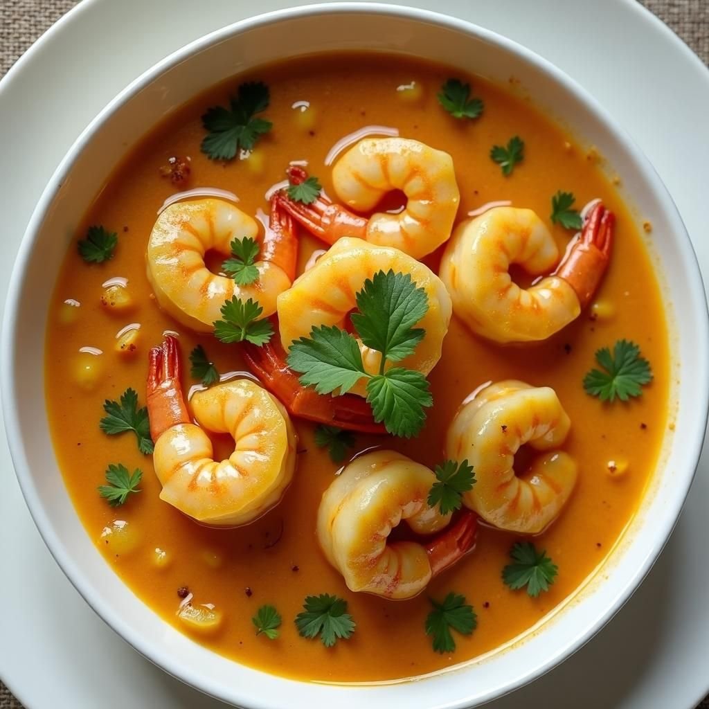 A vibrant, aromatic seafood dish featuring tender prawns simmered in a flavorful gravy