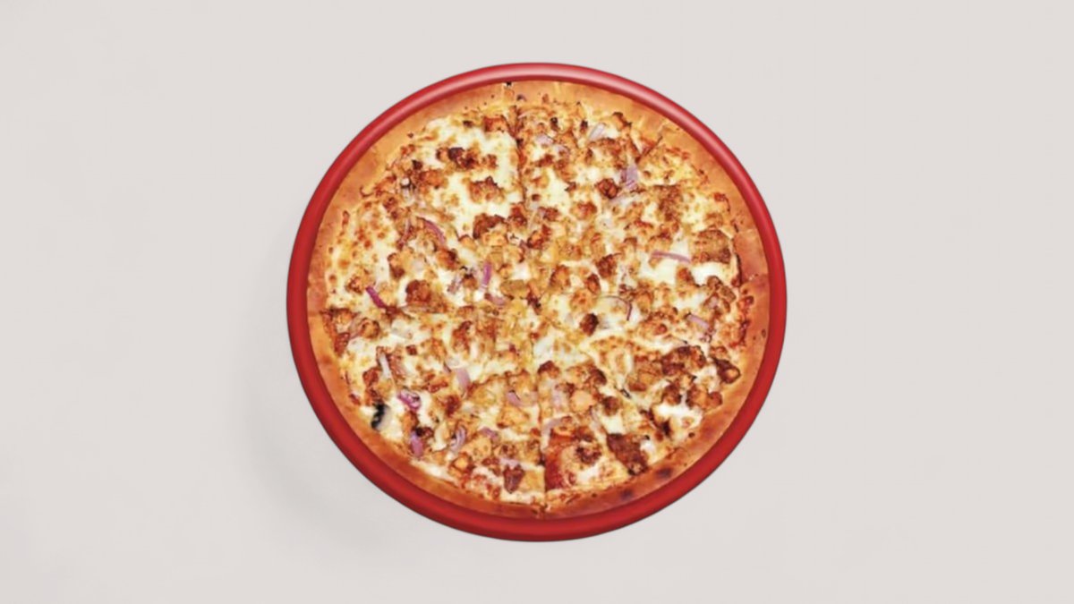 replaces traditional Italian pizza sauce with a rich, spiced tikka masala sauce and tops it with marinated chicken tikka pieces