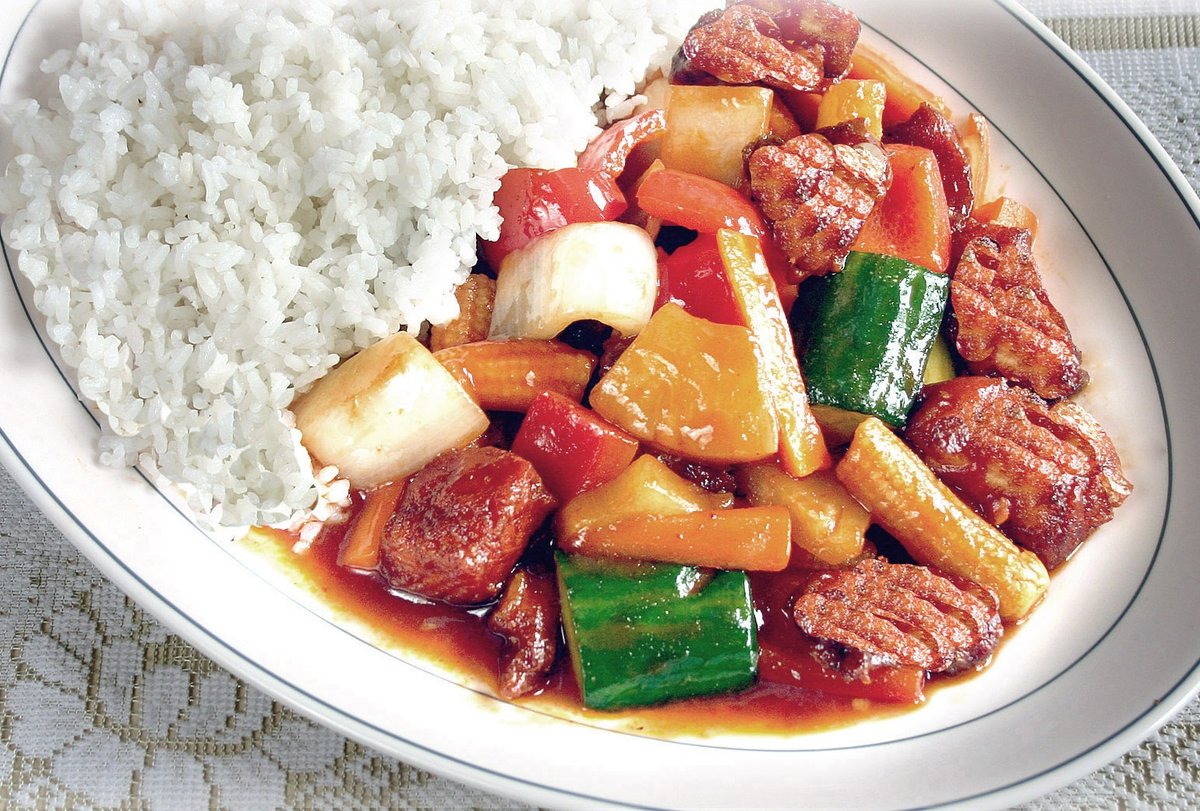 22. Porsaanpaistia tulisessa chilikastikkeessa, riisi