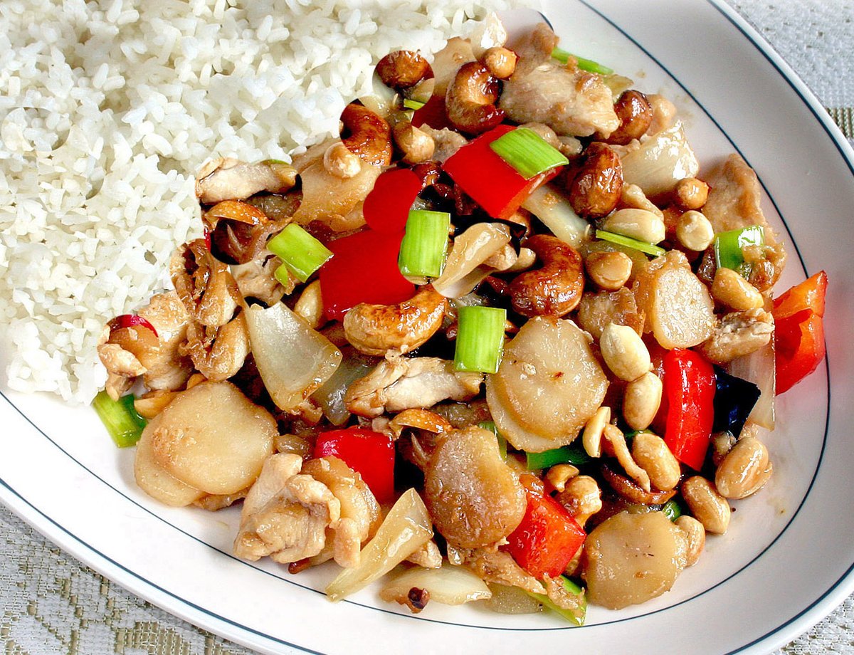 Kanaa, pähkinöitä, riisi