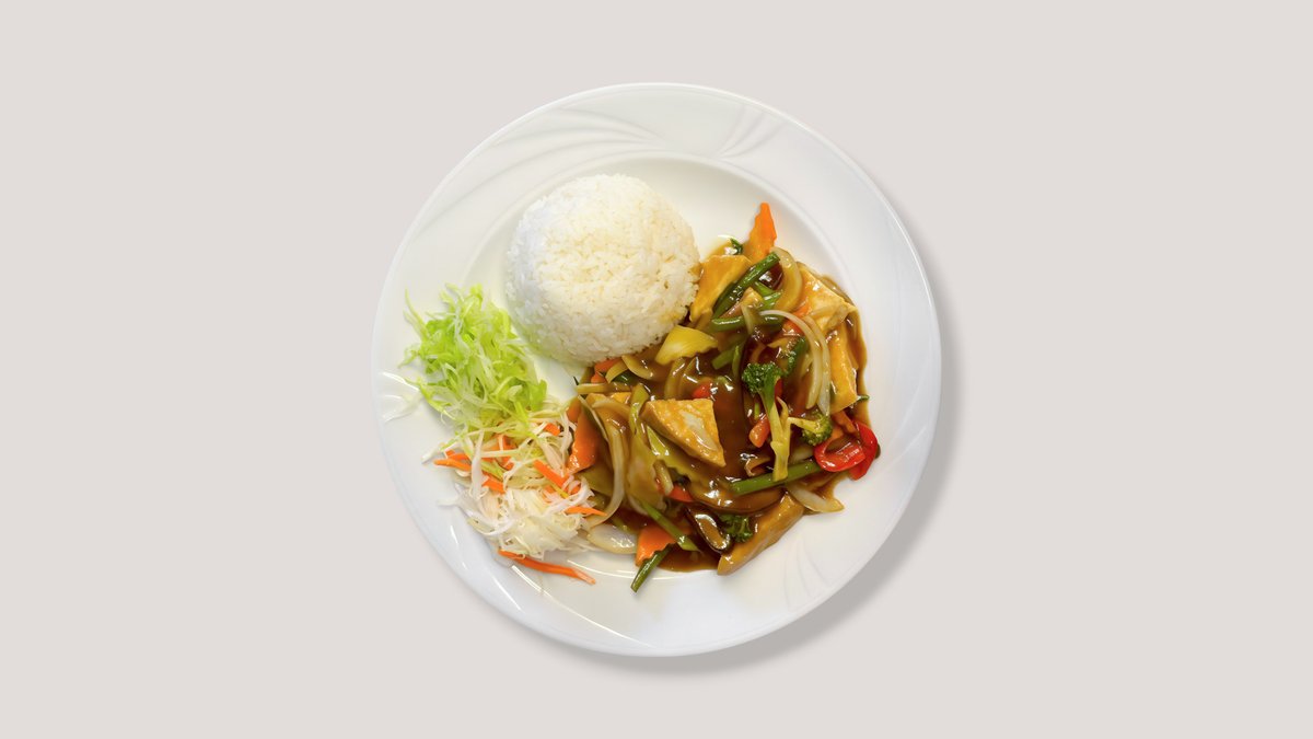 7. Cơm Đậu Hủ Xào Xả Ớt / Riisi ja Paistettu Tofu Sitruunaruoholla ja Chilillä