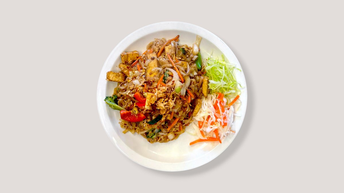 Nuudelit, tofu, sipuli, kiinankaali, paprika, purjo, parsakaali, kaali,paahdetut sipulit...