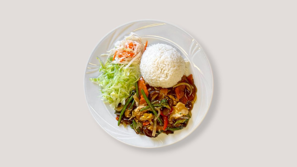 13. Cơm Bò Xào Nấm Đông Cô / Paistettu Naudanliha ja Shiitake-sieni