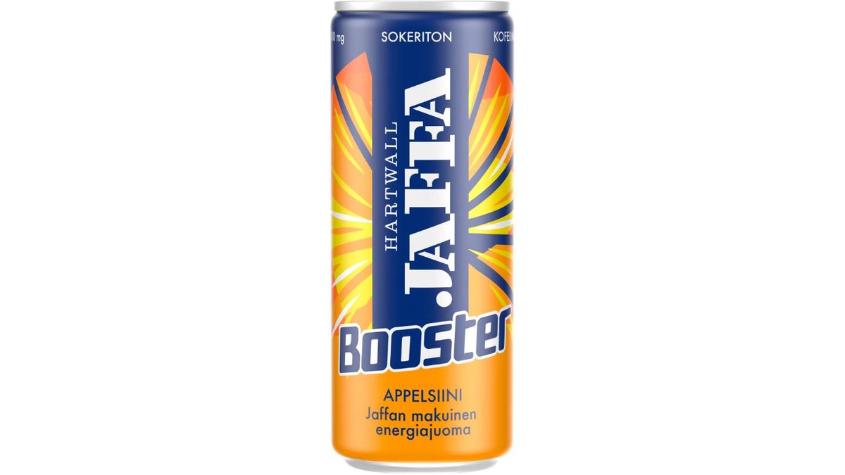 Jaffa Booster Appelsiini Sokeriton on raikas energiajuoma, joka maistuu ikoniselta Hartwall Jaffalta. Sokeriton, appelsiinin makuinen juoma yhdistää energiajuoman ja virvoitusjuoman parhaat puolet: se sisältää 30 mg/100 ml luontaista kofeiinia ja piristäviä B-vitamiineja, mutta maistuu aivan raikkaalta virvoitusjuomalta. Pakattu 0,33l tölkkiin. Juomassa on korkea kofeiinipitoisuus (30 mg / 100 ml) eikä sitä suositella lapsille eikä raskaana oleville tai imettäville. Käyttösuositus enintään 4 tölkillistä päivässä.
