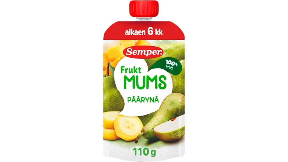 Semper 110g Fruktmums Päron päärynää, banaania ja mangoa alkaen 6 kk täyshedelmäsose