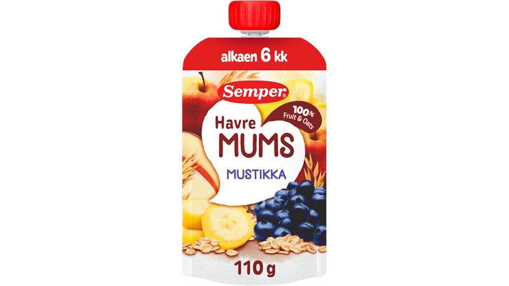 Semper Fruktmums 110g mustikka, omena, banaani & kaura