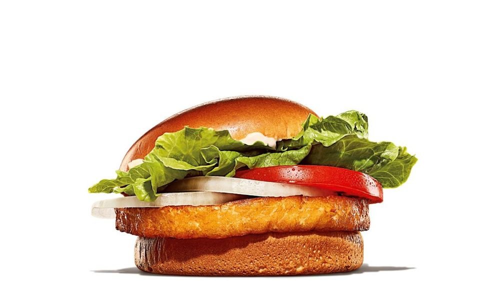 Kaksi liekillä grillattua kasvispihviä, juustoa, tuoretta salaattia, suolakurkkua, sipulia, Big King™ -kastiketta, seesaminsiemensämpylä.