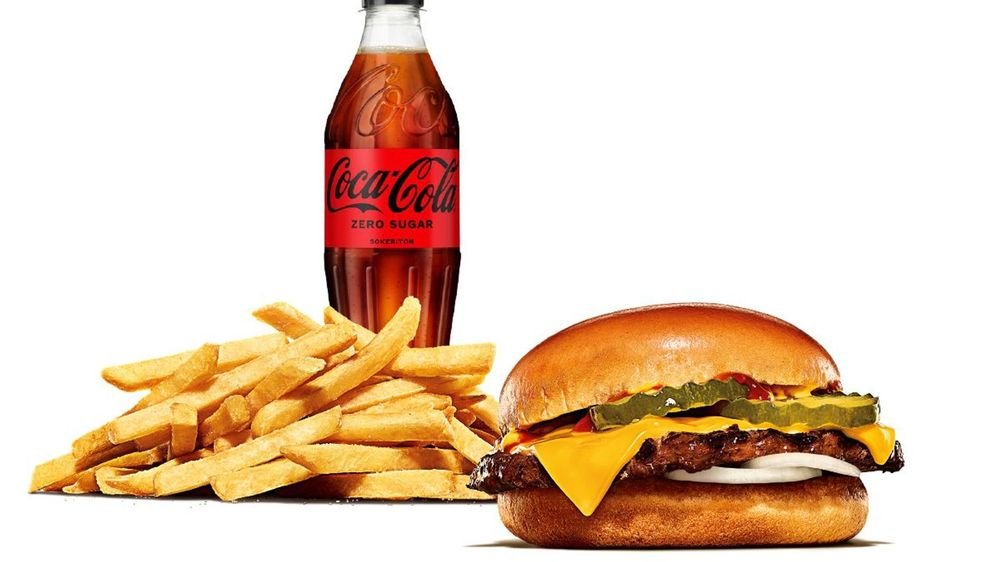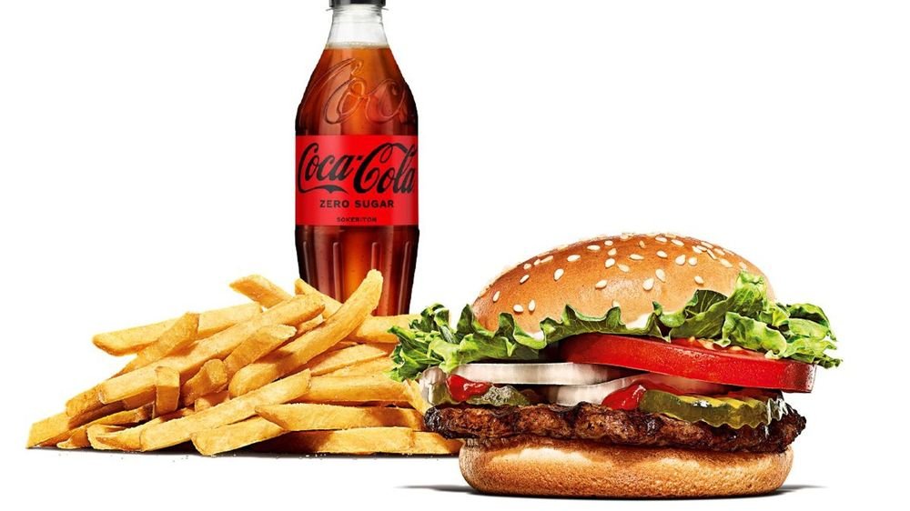 Ateriaan sisältyy L-kokoinen lisuke, sekä 0,5 l pullojuoma.