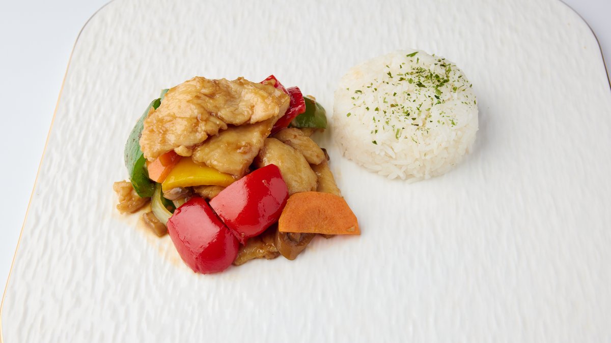 Teriyaki kanaa riisillä tai paistetulla nuudelilla