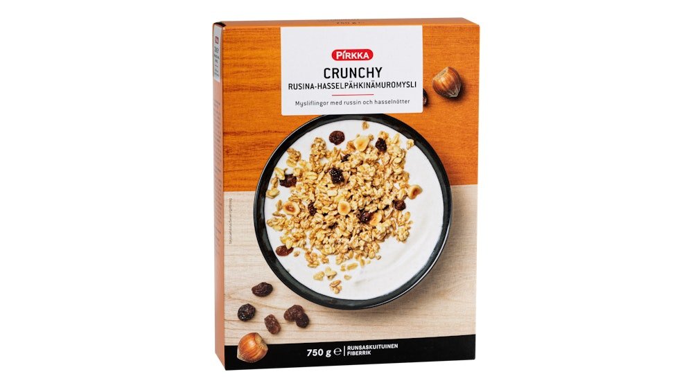 Pirkka Crunchy Rusina-hasselpähkinämuromysli 750g