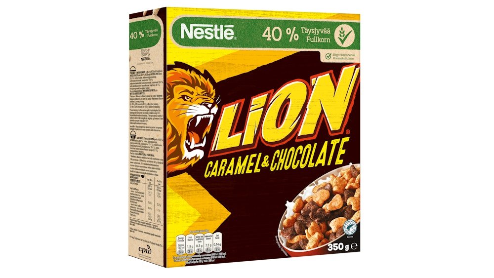 Nestlé Lion 350g suklaan ja toffeen makuisia täysjyvämuroja