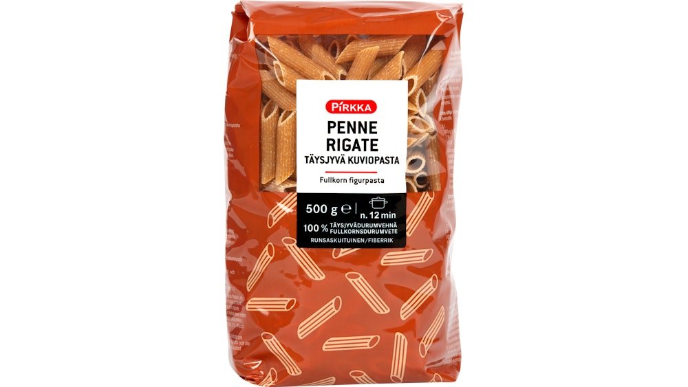 Pirkka penne rigate täysjyvä kuviopasta 500g