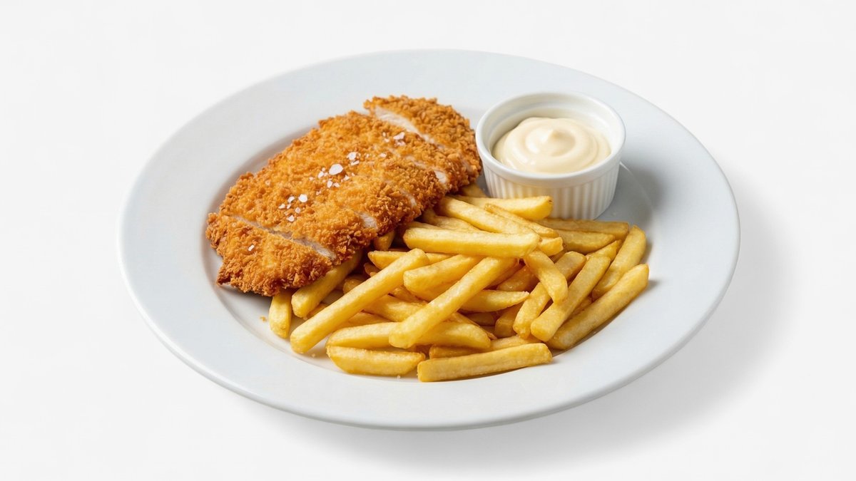 Paneroitua kana ja ranskalaisia, oma valinta majoneesi.