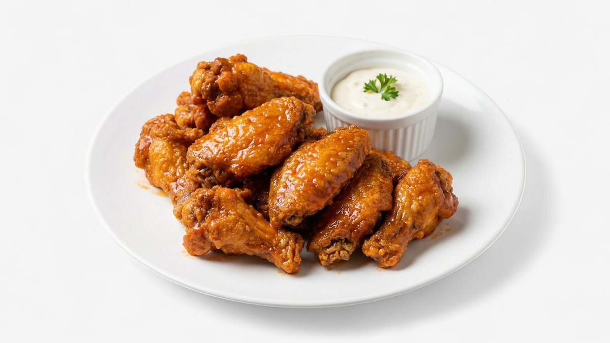 Rapeaksi friteerattuja kanansiipiä talon omalla buffalo-kastikkeella ja oma valinta majoneesi. 10, 15 tai 20 kpl.