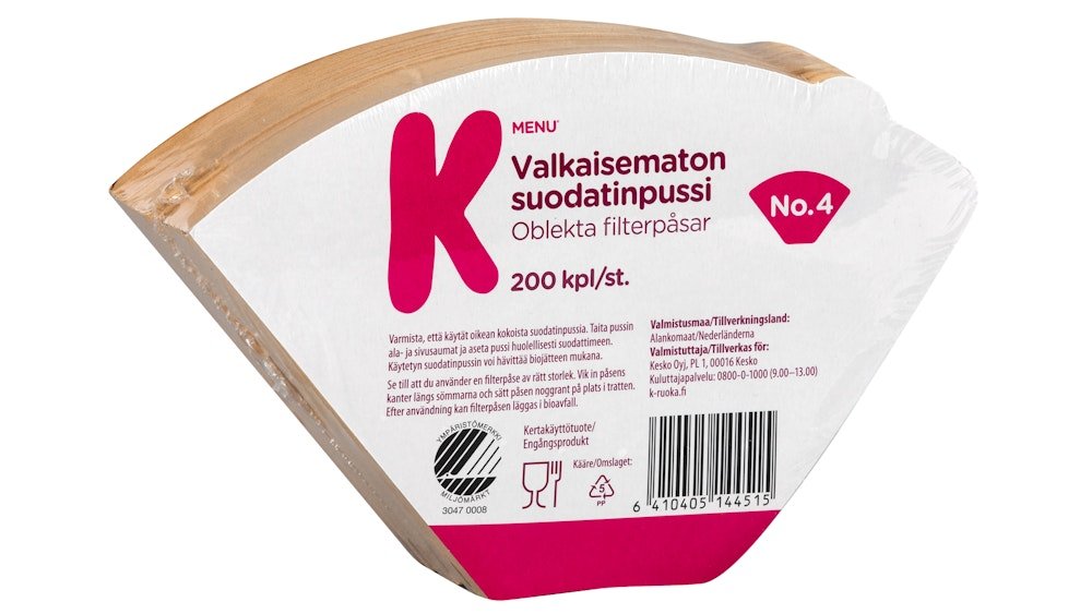 K-Menu valkaisematon suodatinpussi No.4 200kpl
