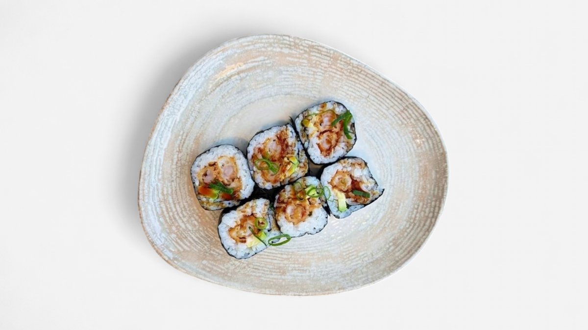 Deep-fried shrimp, avocado, spring onion, mayo, sweet soy sauce