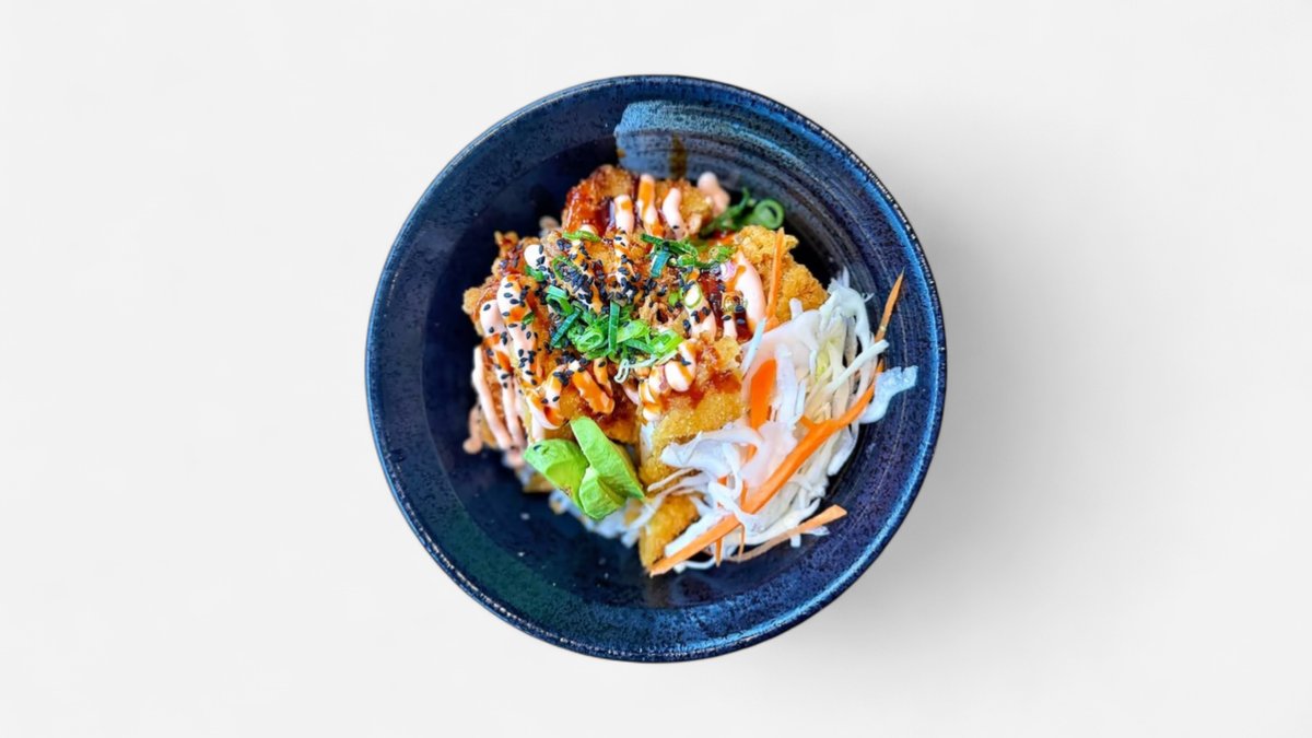 Signature fried chicken, rice, cabbage, cucumber, spring onion, sesame seed, honey lime mayo, sweet soy sauce.