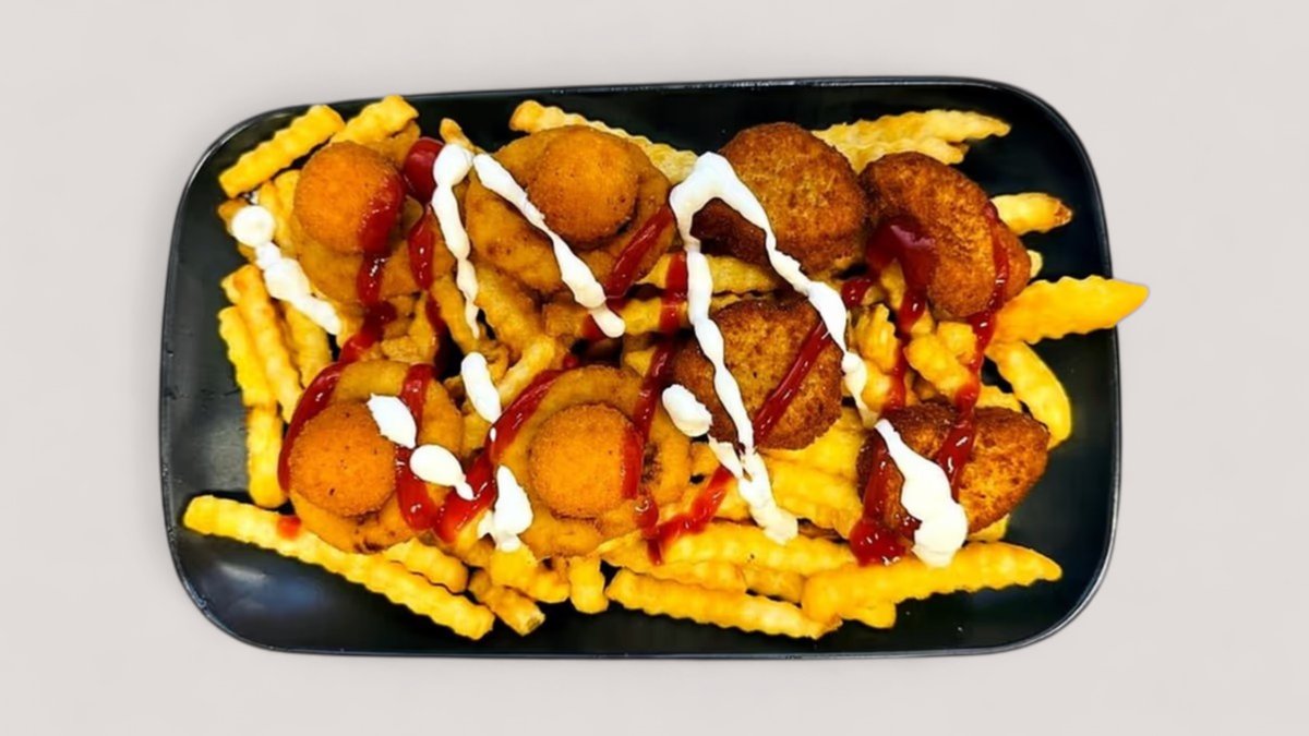 Nuggets, cheese balls, onion rings, fries + dip + drink