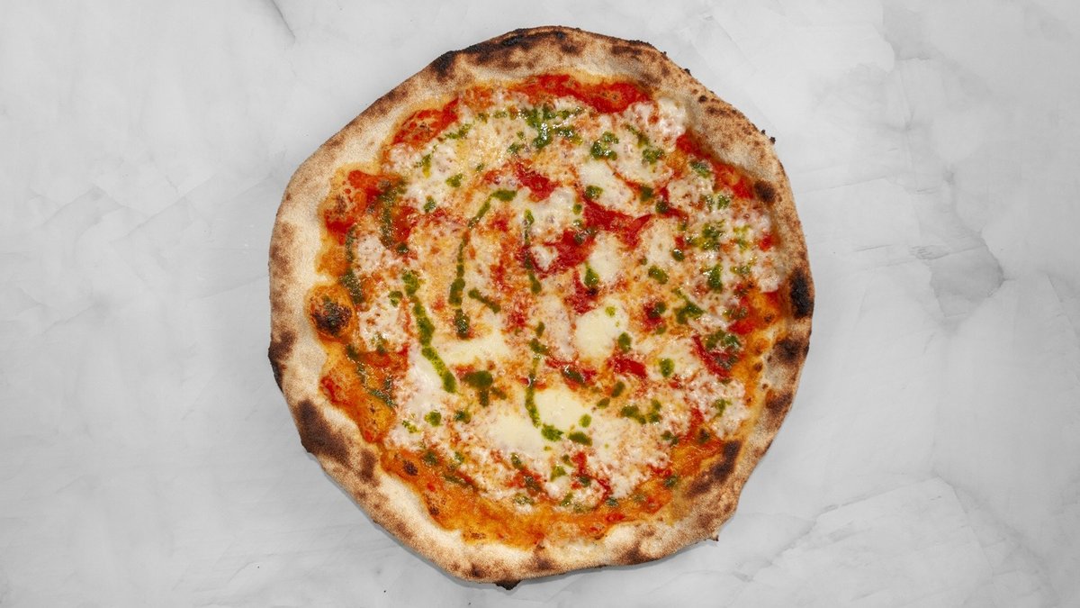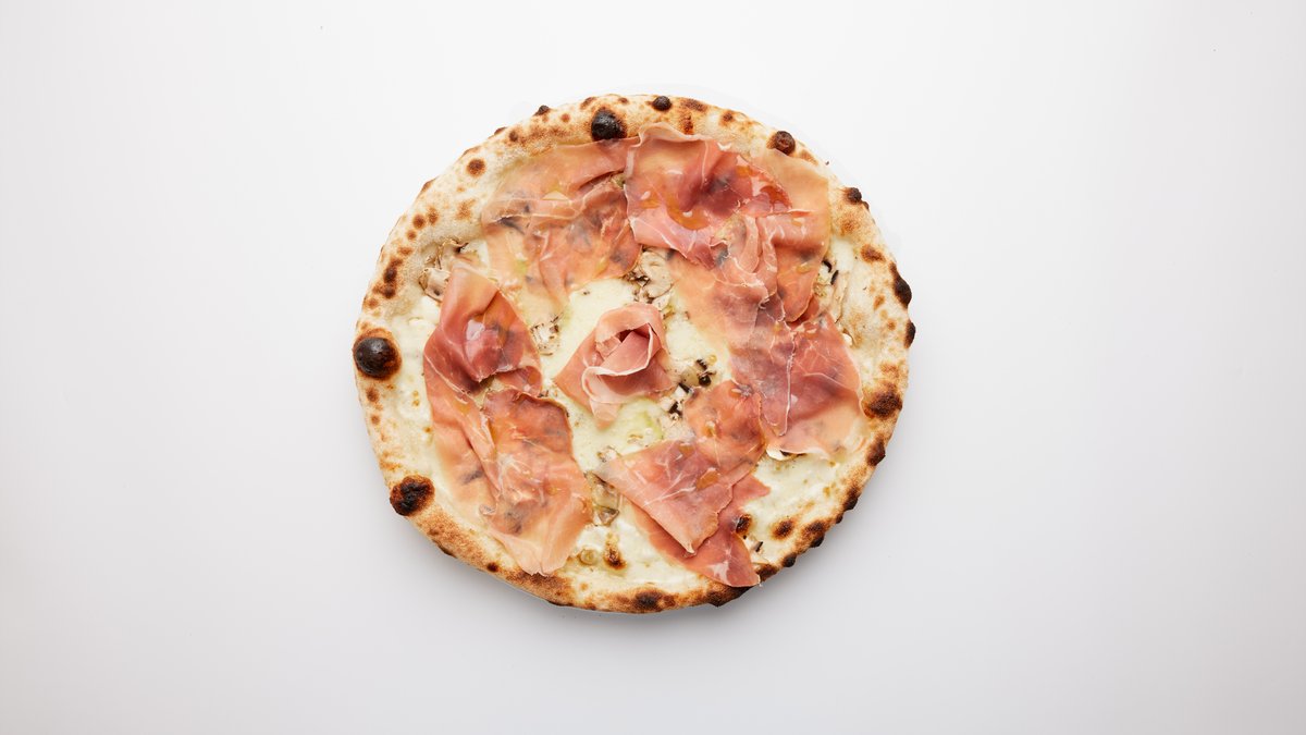Tomaattikastike, mozzarellajuusto, rucola, tuore tomaatti, parmakinkku, parmesaani