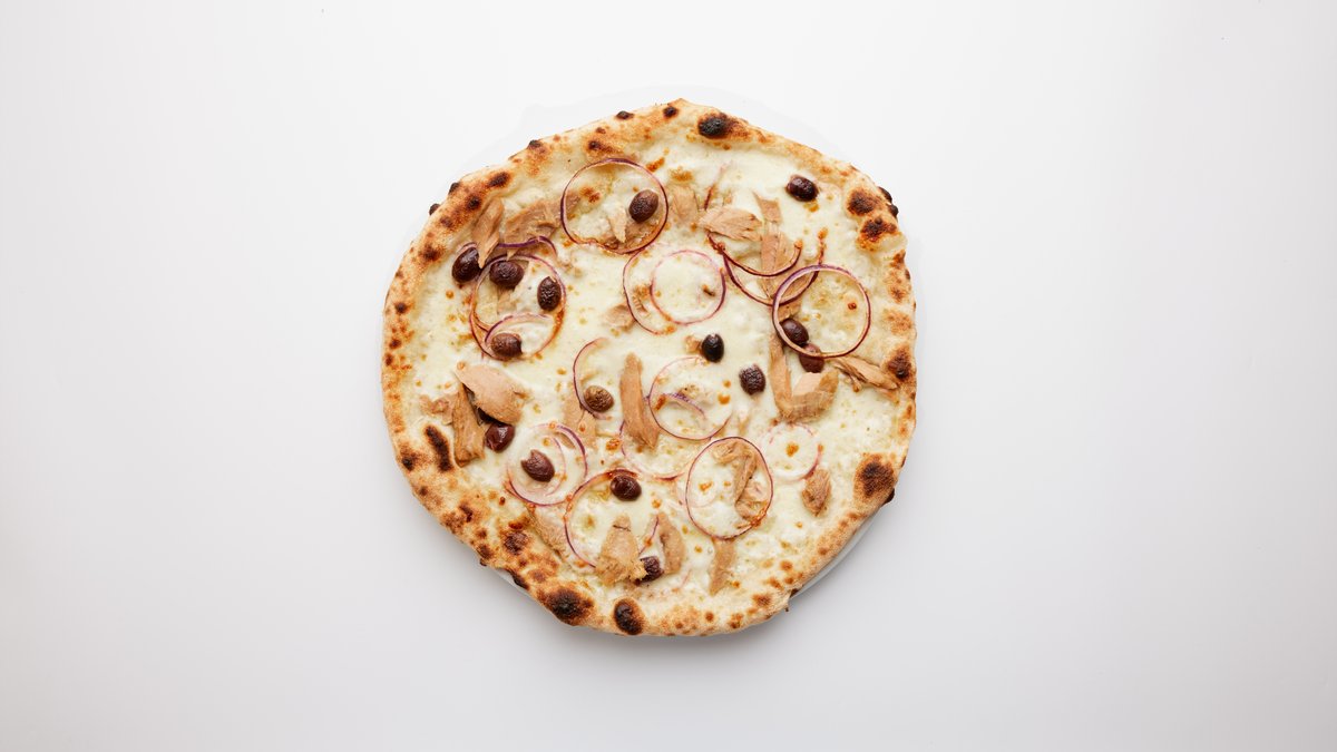 Mozzarellajuusto, tonnikala, punasipuli, oliivi