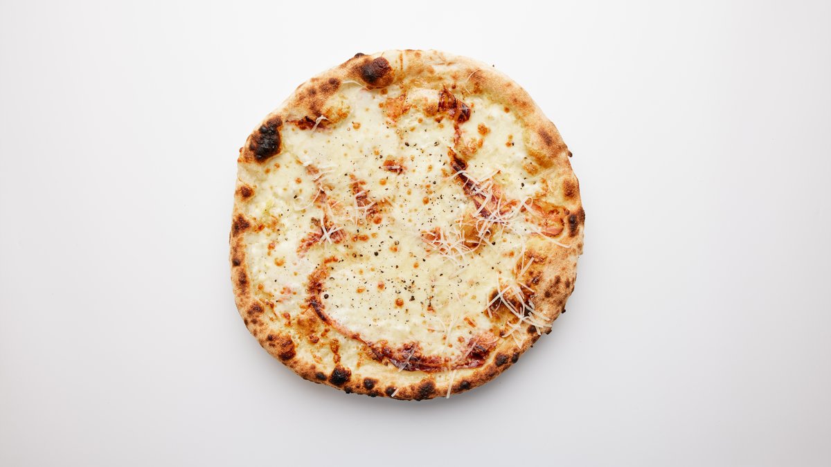 Valkoiset pizzat. Pizzat sisältävät laktoosia. Lihan alkuperämaa: Italia