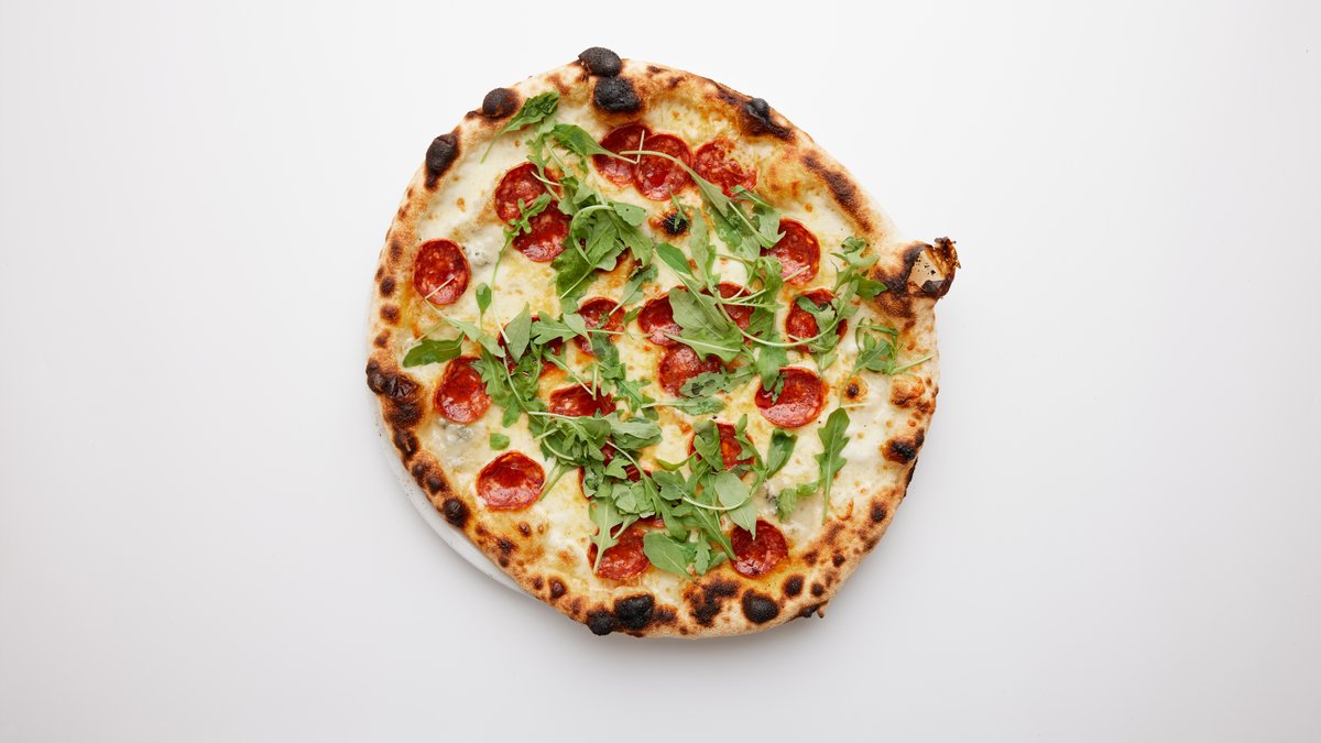 Mozzarellajuusto, pepperonimakkaraa, gorgonzola, rucola