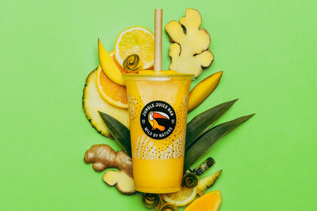 mango, inkivääri, sitruuna, ananas, banaani, appelsiini, jäitä L,G,Ve