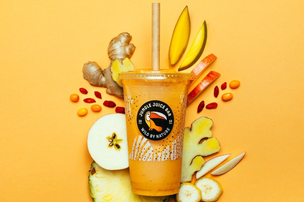 tyrni, inkivääri, ananas, mango, banaani, luomu goji, omena, jäitä, L,G,Ve