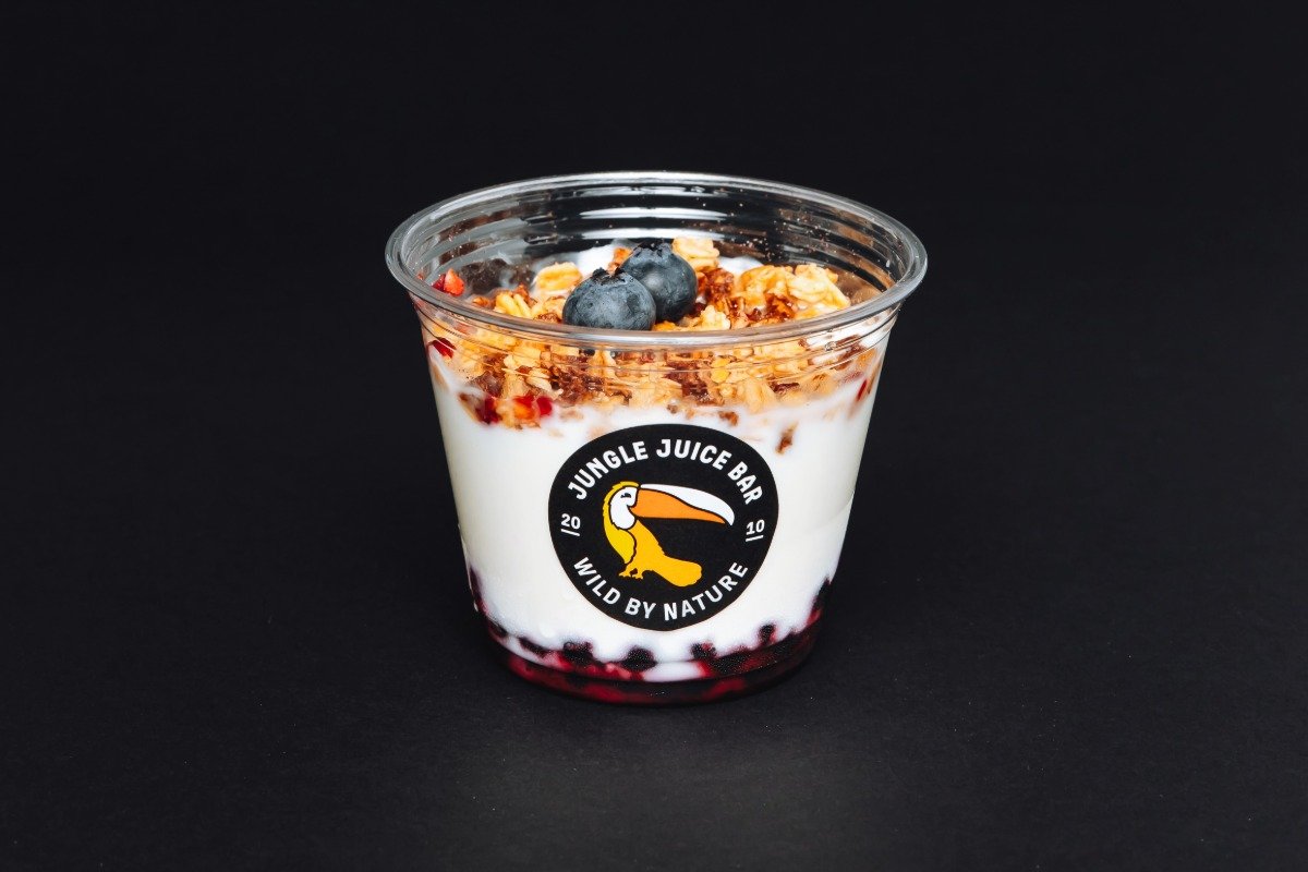 luonnonjogurtti, suomalainen metsämustikka, pensasmustikka, granola, agavesiirappi, VL. Saattaa sisältää pieniä määriä MAAPÄHKINÄÄ ja muita PÄHKINÖITÄ.