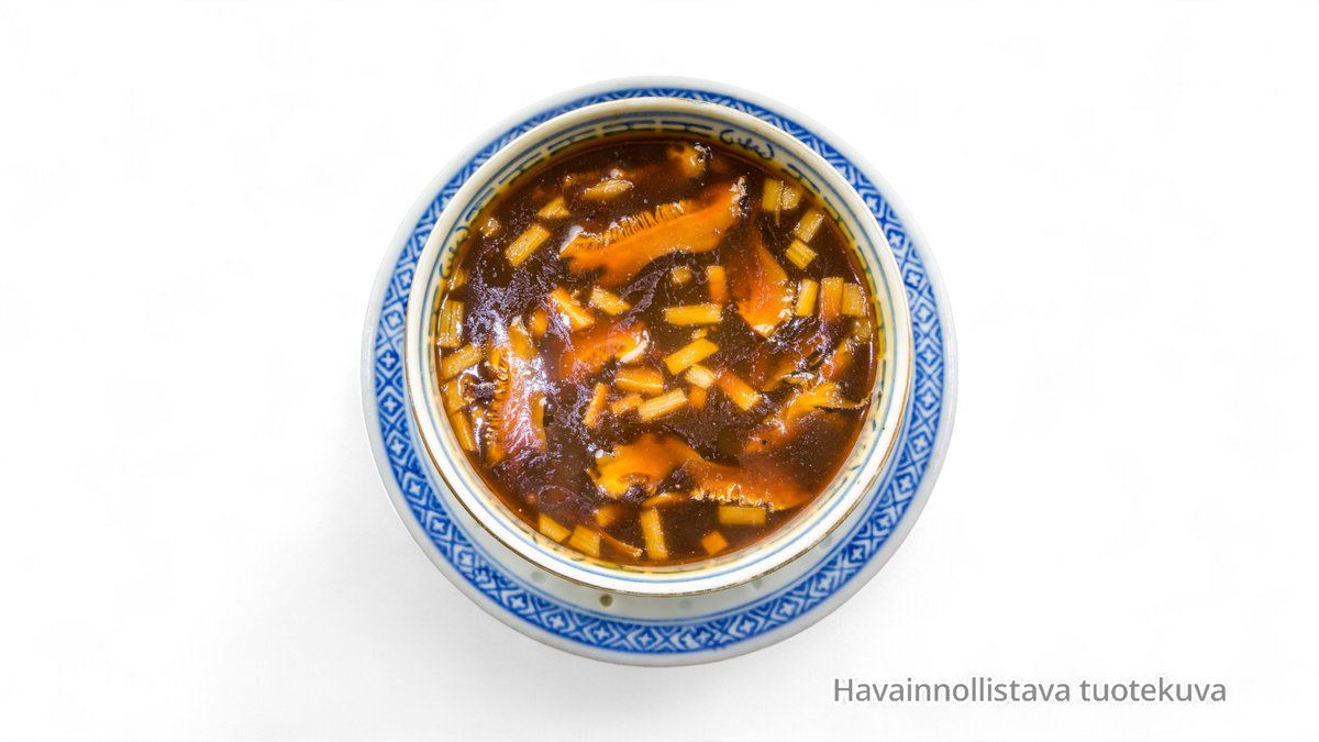 54. Friteerattua ankkaa hapanimeläkastikkeessa