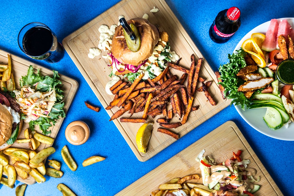 Iso smash-naudanlihapihvi, tomaattia, tuorekurkkua, valkosipulista tzatziki-kastiketta, pariloitua halloumia. Sisältää myös punasipulia, coleslawia, salaattia, Mikes BBQ- kastiketta, valkosipulimajoneesia ja suolakurkkua.