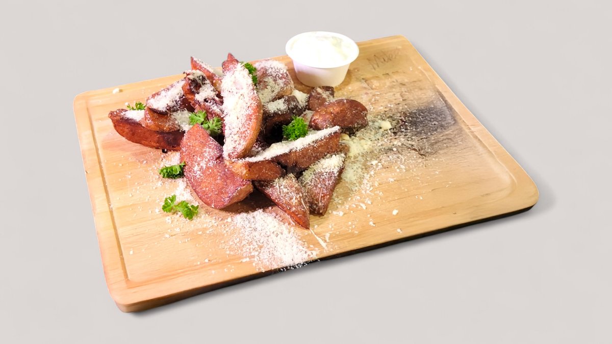 Iso smash-naudanlihapihvi, aurajuustoa, karamellisoitua rommiananasta. Sisältää myös punasipulia, coleslawia, salaattia, Mikes BBQ- kastiketta, valkosipulimajoneesia ja suolakurkkua.