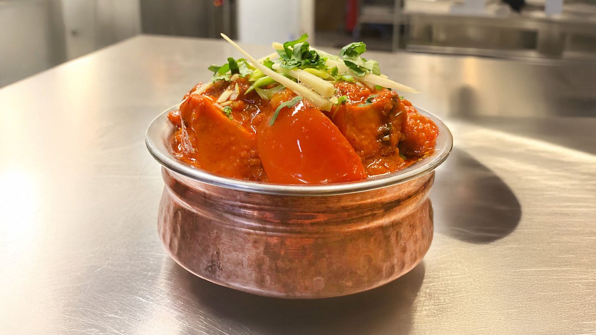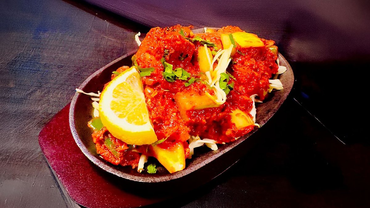 Chicken breasts grilled in a tandoor oven, lamb, fresh cheese, giant prawns, onion and pepper, Ginger-garlic, spicy tomato and yogurt in masala sauce