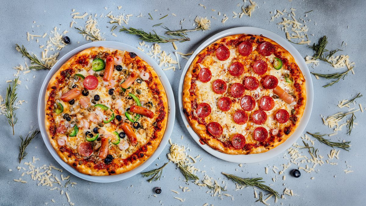 Kaikkiin pizzoihin kuuluu tomaattikastike ja pizzajuusto