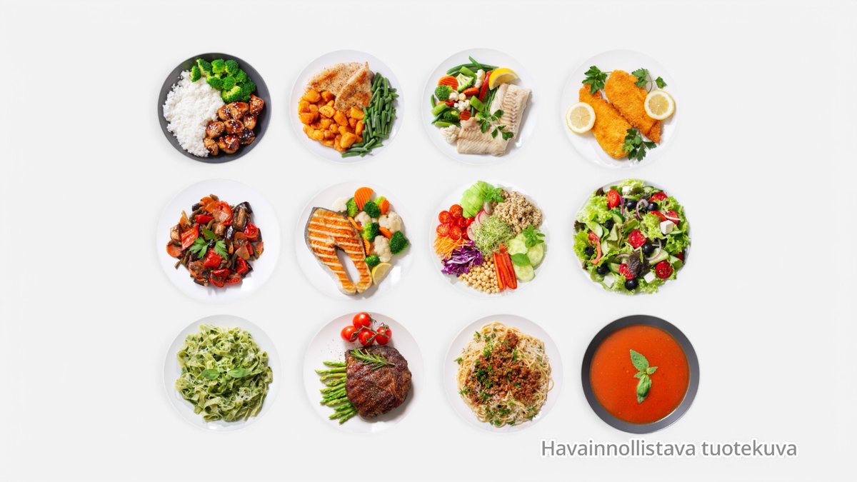 L - laktoositon, G - gluteeniton, M - maidoton, V - vegaaninen (Vegaaninen pyydettäessä), G - pyyd. (Gluteeniton pyydettäessä), Fi- suomalaista lihaa