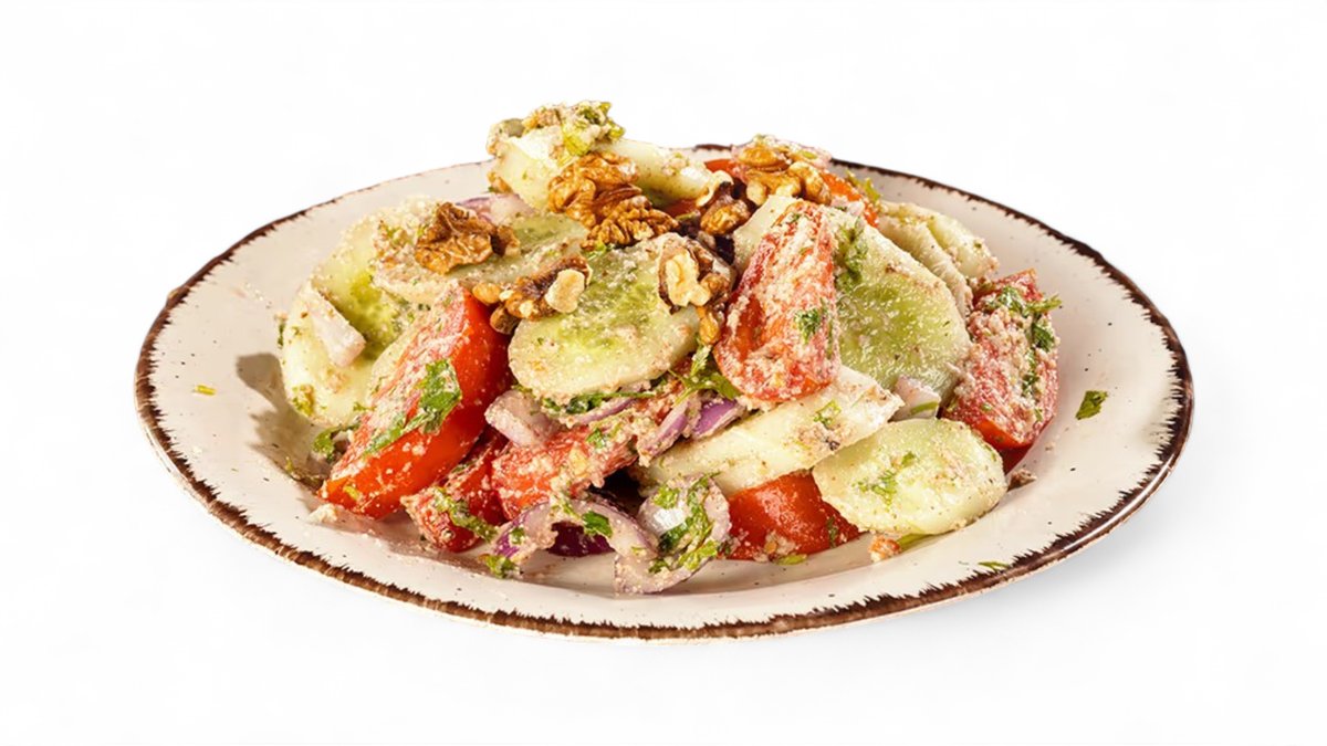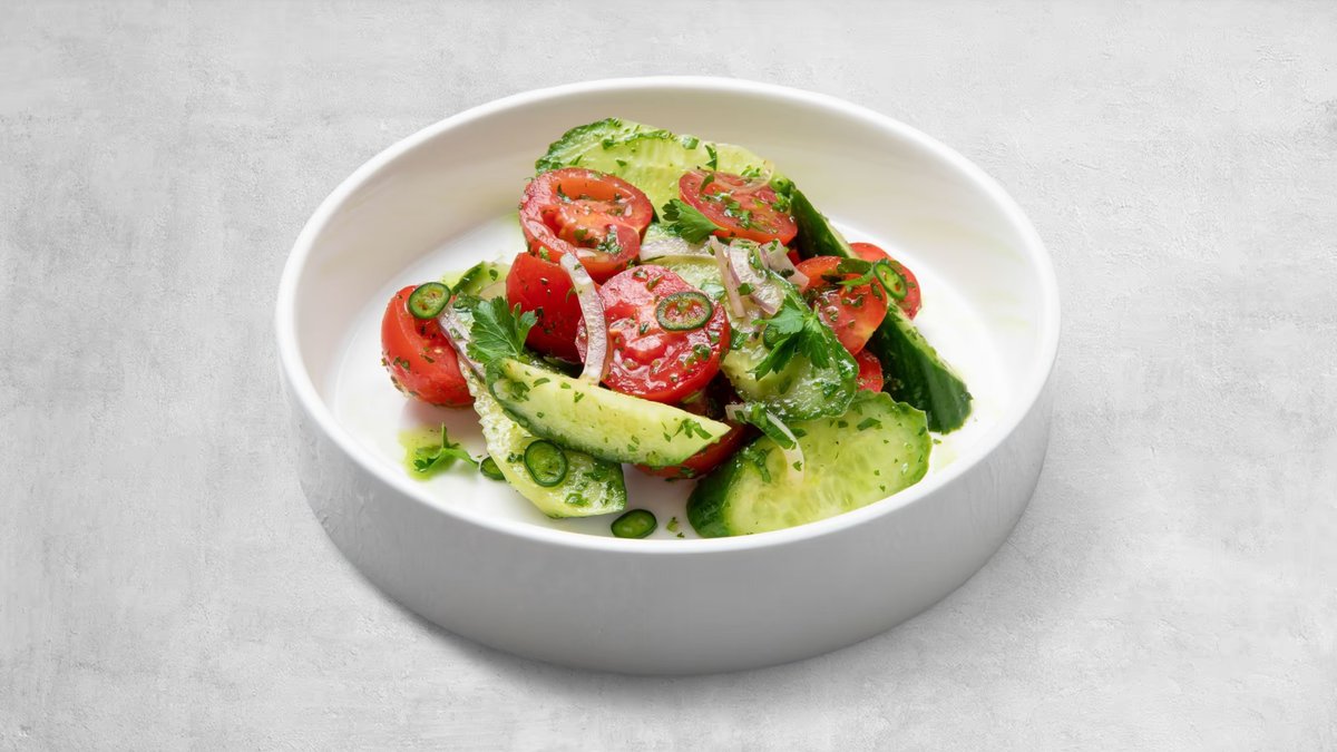 Cucumber-tomato salad with greens