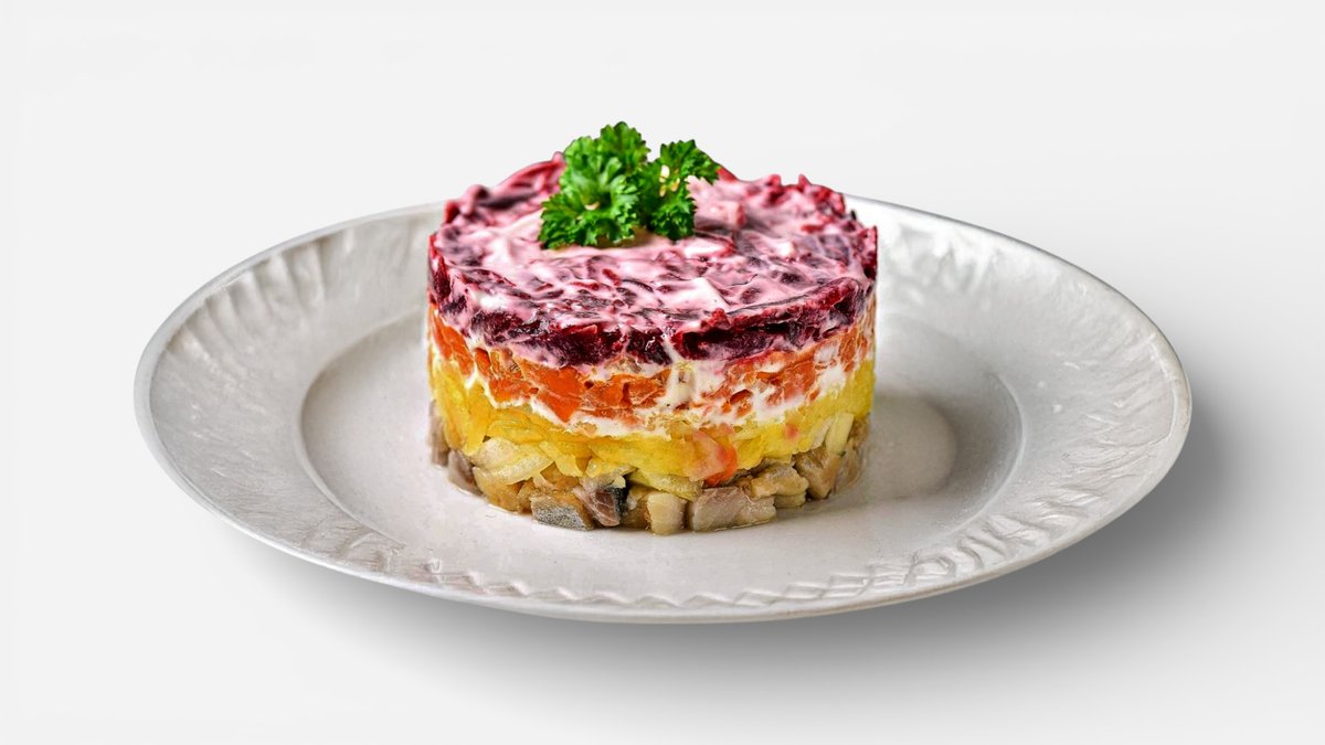 Herring, beetroot, carrot, potato, egg,mayonnaise