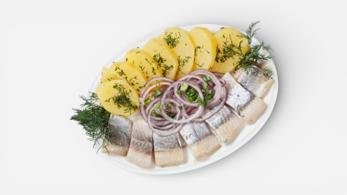Herring with boiled potatoes, onions, and dill