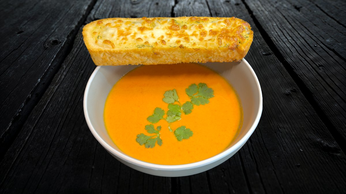 სურნელოვანი ნაღების მქონე პომიდვრის კრემ-სუპი მიირთმევა ცხლად, ხრაშუნა ტოსტით, რომელიც ყველით არის გამომცხვარი.
