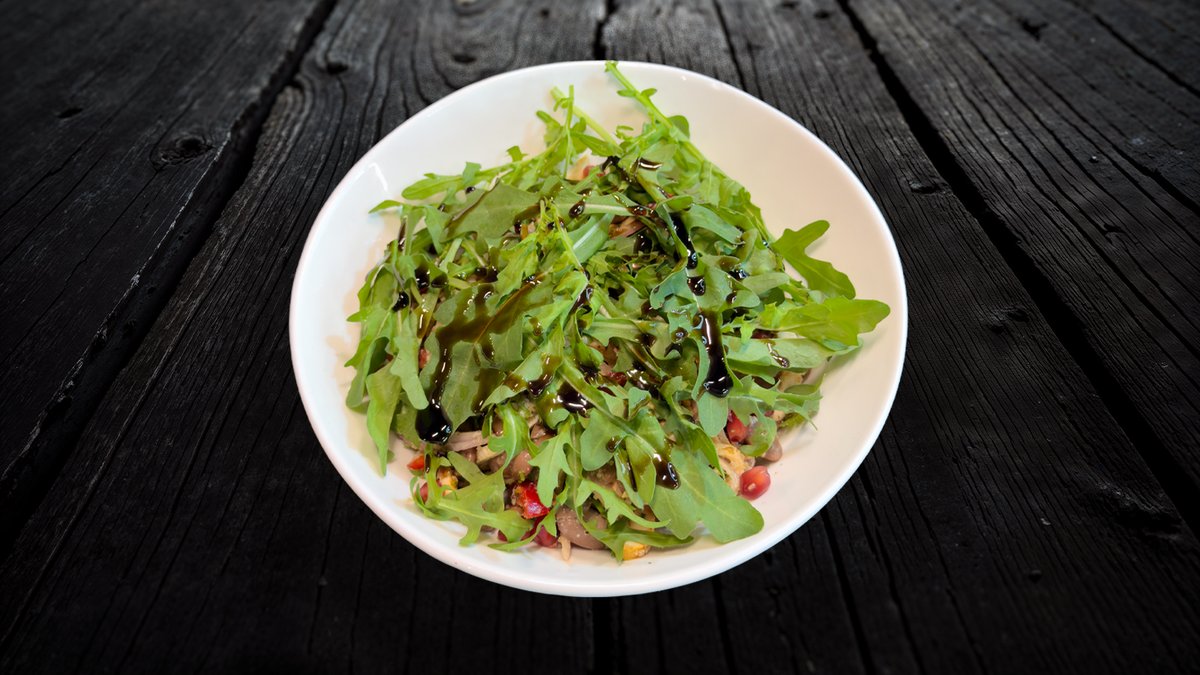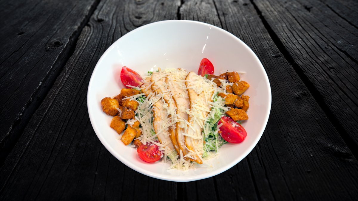 კლასიკური სალათი გრილზე შემწვარი ქათმის გულ-მკერდით, ხრაშუნა სუხარიკებით და პარმეზანის ყველით ნაღების ცეზარ სოუსში. სუფთა, სურნელოვანი და დაუვიწყარი.