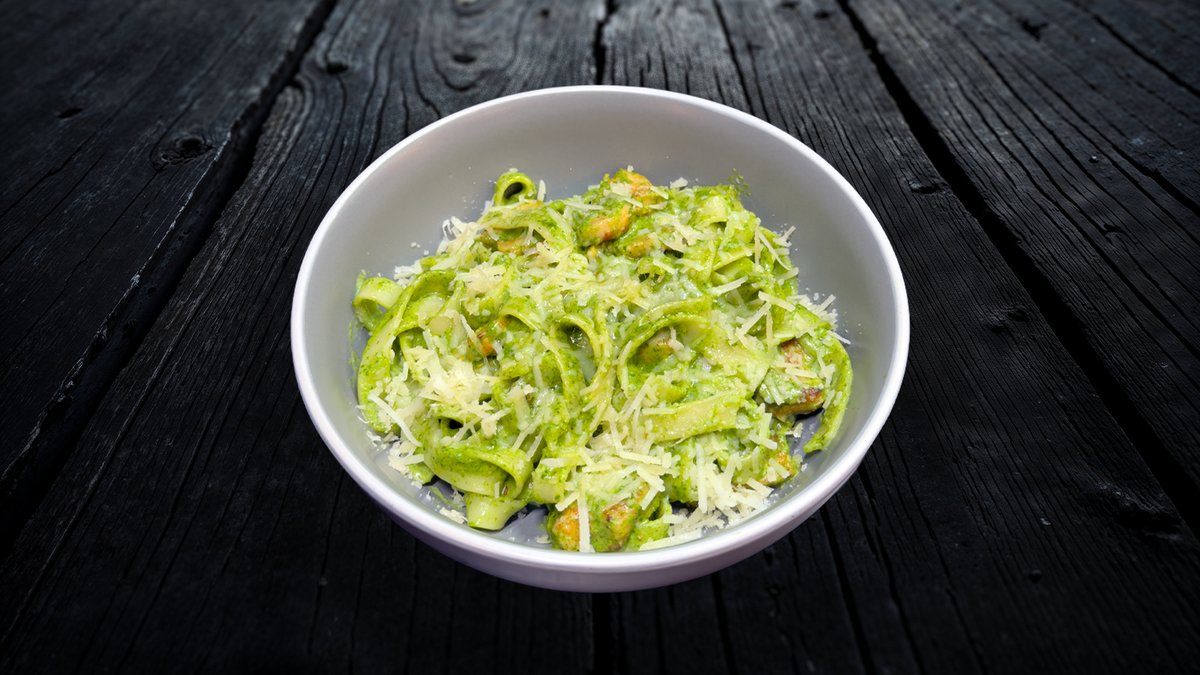 სურნელოვანი იტალიური კერძი, რომელიც წარმოადგენს ფეტტუჩინის პასტას, შემოთავაზებულს ნაზი ქათმის ფილეს ნაჭრებით და ისპანახით ნაღების სოუსში.